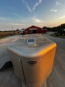 ✔️ Solar panel charging system in the tack room — operate lights and power jack without being hooked up
